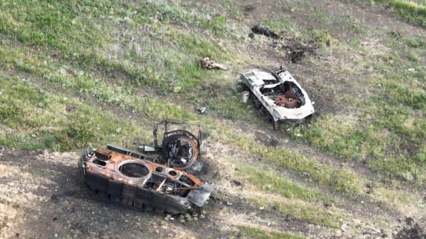 - Знищена російська техніка біля Старомайорського на Донеччині. Травень-Червень 2024. Україна. Фото: соціальна мережа “Х” @OSINTua