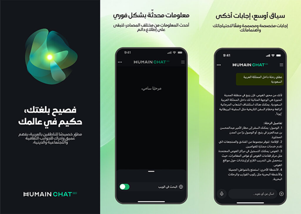 Саудівська компанія Humain представила додаток Humain Chat, що працює на базі національної мовної моделі Allam, розробленої всередині країни. Розробники позиціонують сервіс як чат-бот, створений із урахуванням ісламських цінностей та культурної спадщини регіону.
