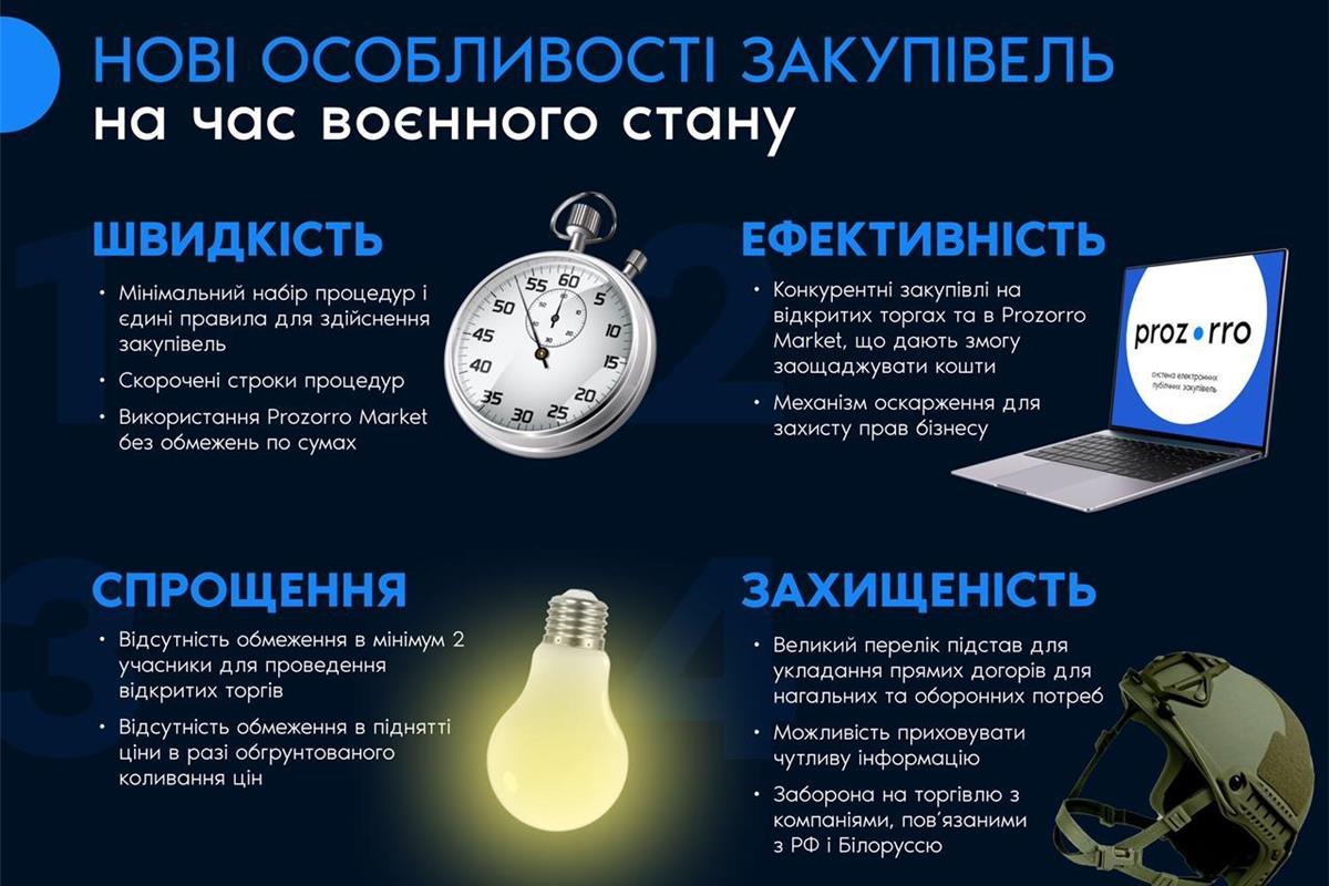 “Навіть у цих непростих умовах система публічних закупівель гнучко реагує на потреби закупівельників та постачальників. Оновлення умов проведення закупівель на час воєнного стану дозволить більш ефективно використовувати бюджетні кошти, що вкрай важливо в поточних умовах. Крім того, ми значно спрощуємо роботу закупівельникам, впроваджуючи спрощені та пришвидшені процедури і розширюючи можливості використання Prozorro Market. Постачальники також отримують більше інструментів та можливостей для чесної конкуренції на тендерах, зрештою Prozorro Market може стати для них вкрай ефективним інструментом продажу. Таким чином оновлені правила проведення закупівель не тільки спрощують та пришвидшують роботу закупівельників, а й стимулюватимуть розвиток українського бізнесу в цих непростих умовах”, – наголосила заступниця Міністра економіки України Надія Бігун.