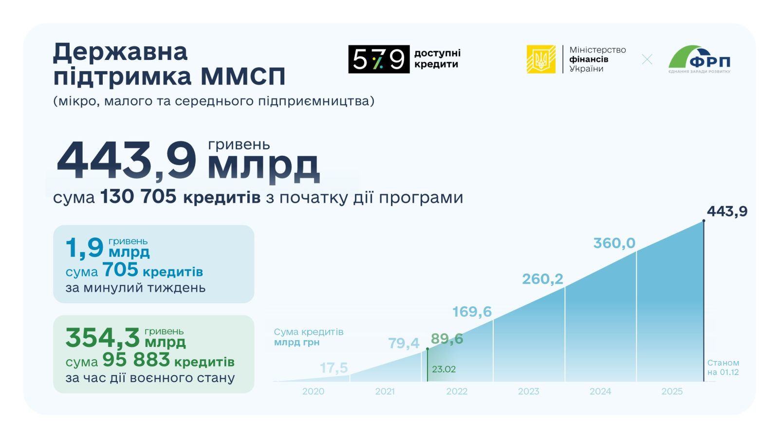 Державну програму «Доступні кредити 5-7-9%» реалізує Фонд розвитку підприємництва (ФРП), єдиним учасником якого є Уряд України в особі Мінфіну