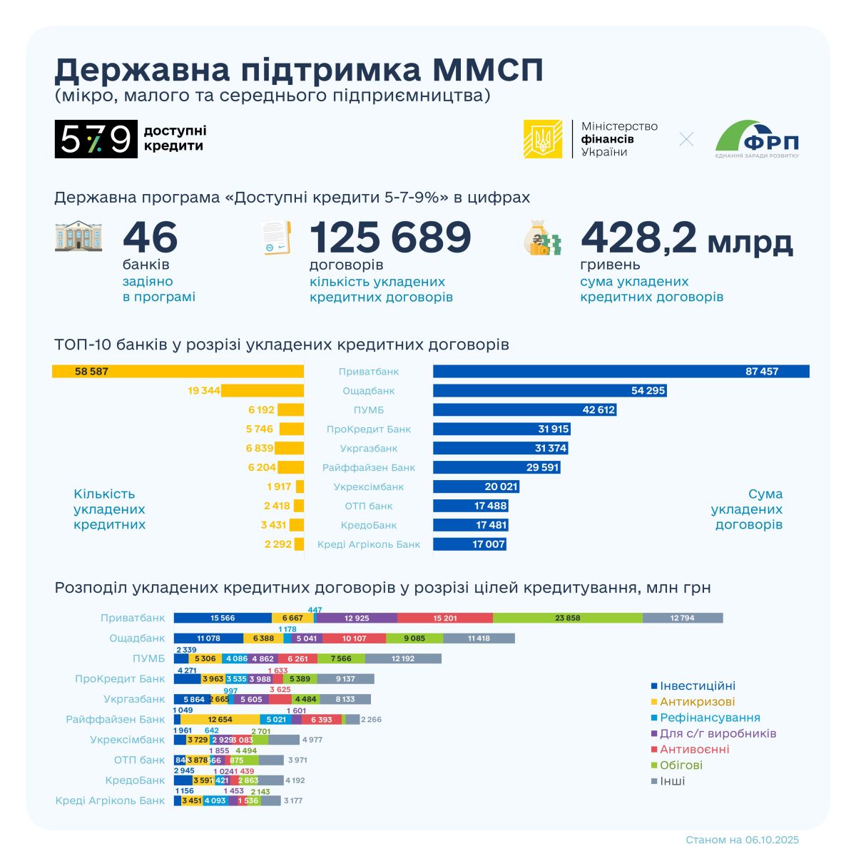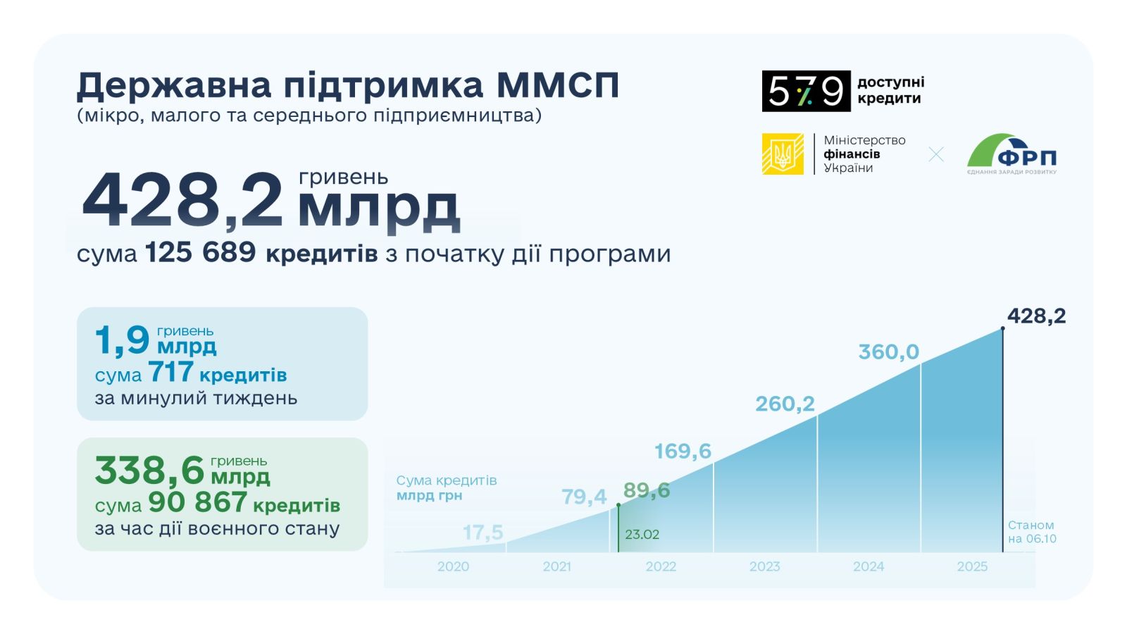 З початку 2025 року за програмою 5-7-9 підприємці отримали 21 232 кредитив на 62,1 млрд грн, з яких від банків державного сектору економіки – 14 737 кредити на 30,7 млрд гривень.