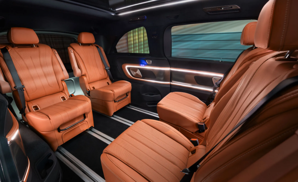 На передній панелі встановлена мультимедійна система MBUX Superscreen із трьома дисплеями. Для задніх пасажирів доступний 31,3-дюймовий екран з роздільною здатністю 8K, який висувається зі стелі.