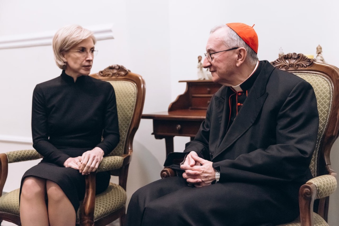 Заступниця керівника Офісу Президента Ірина Верещук під час зустрічі із Державним секретарем Святого Престолу, кардиналом П’єтро Пароліном передала лист від Президента Володимира Зеленського Папі Римському Леву XIV з проханням сприяти звільненню полонених та депортованих Росією українців.