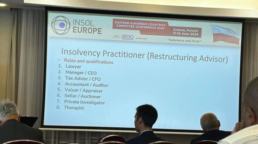 13-14 червня 2024 р. у Кракові (Польща) відбулася конференція комітету країн Східної Європи INSOL Europe. У заході взяли участь фахівці з реструктуризації, неплатоспроможності та банкрутства з Польщі, Чехії, України, Німеччини, Італії, Австрії, Греції, Болгарії, Румунії, Нідерландів, Франції.
