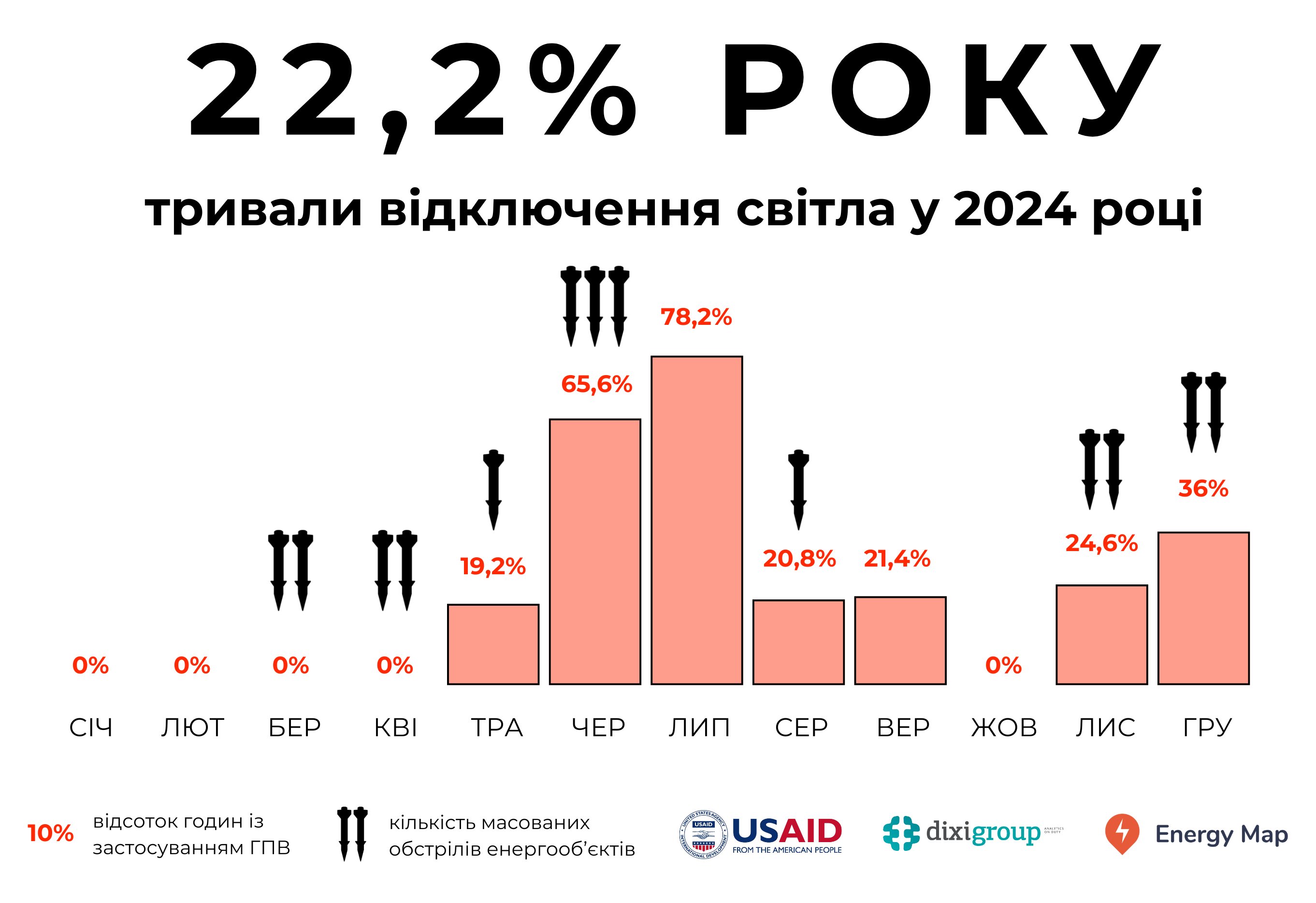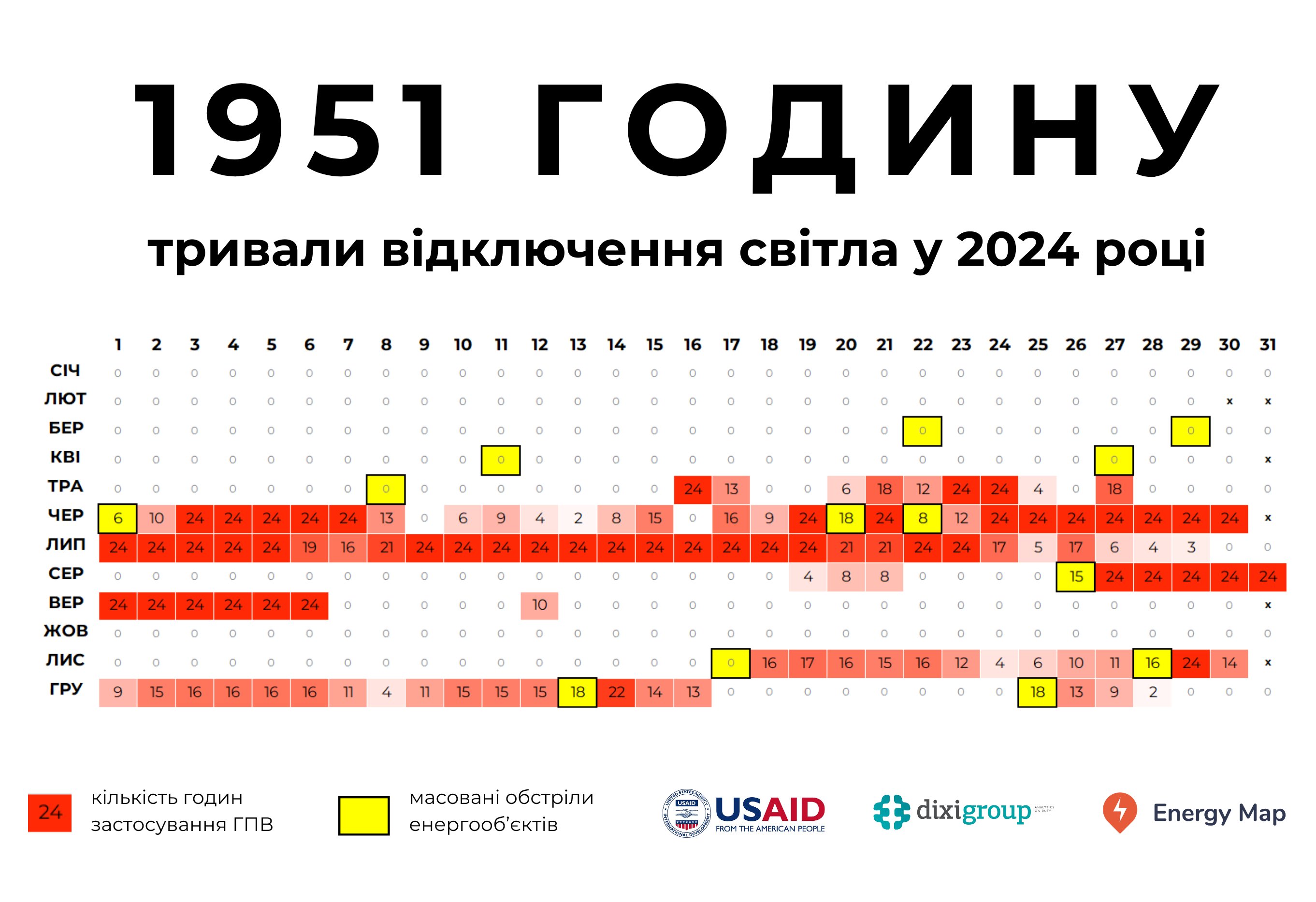 Скільки годин Україна прожила без електроенергії у 2024 році — інфографіка