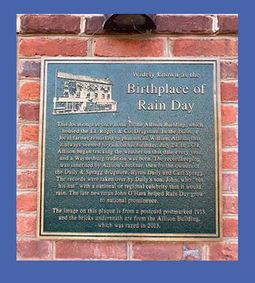 У 1979 році у цей день місто Вайнсбург офіційно почало щорічно відзначати День дощу у вигляді парадів, спортивних змагань, конкурсів парасольок та фестивалів. А 29 липня 2023 року, на вулиці, де колись стояла аптека, була відкрита меморіальна дошка, присвячена Еллісону та його спостережливості.