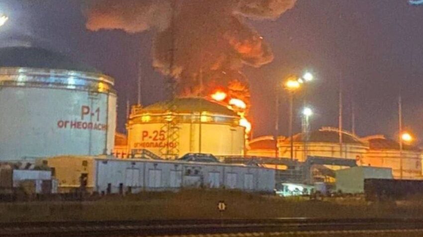 Вночі у селищі Волна Темрюкського району Краснодарського краю РФ загорівся резервуар з нафтопродуктами.