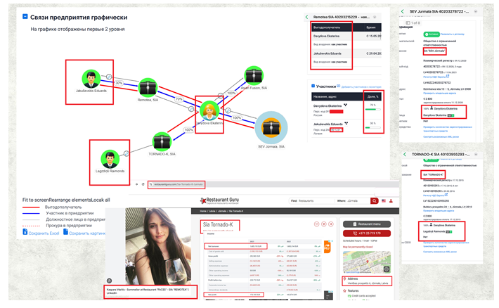 За місцевими документами, Катерина Давидова зустрічається зі своїм бухгалтером в затишному ресторані «Faces» в Юрмалі. До речі, в ресторані чудова винна карта – саме те, щоб відзначити перший етап успішної легалізації російських грошей. Далі головний бухгалтер бере готівку з великого чемодана, розбиває її на дрібніші суми та розподіляє між мережею ресторанів по всій Латвії та сусідній Литві.