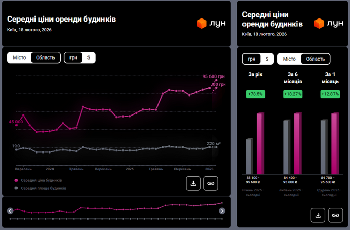 Средние цены аренды домов в Киеве, Инфографика: ЛУН