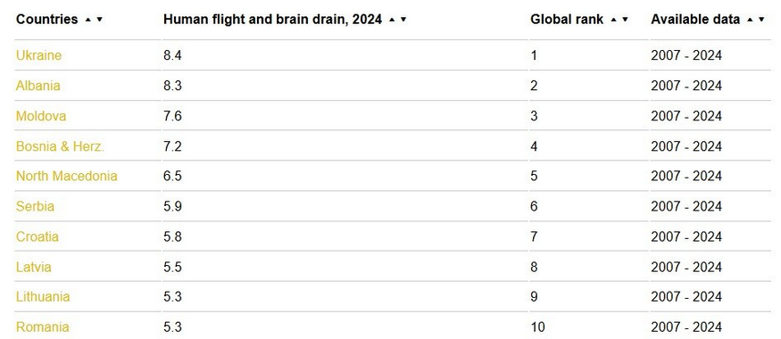 Украина стала первой в Европе и седьмой в мире по «оттоку мозгов» – индекс The Global Economy