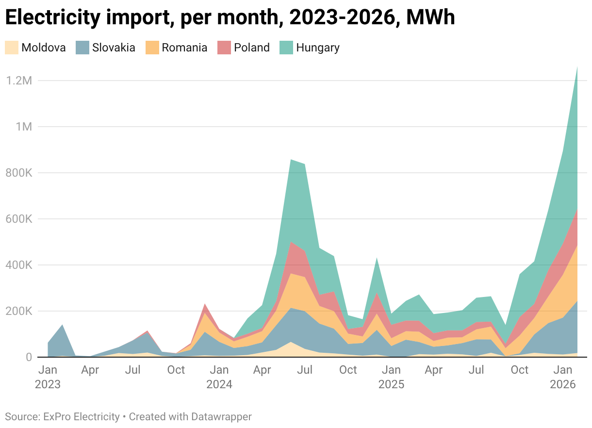 В феврале 2026 года Украина привлекла из-за границы рекордные объемы электроэнергии – 1,26 млн МВт-ч. Об этом свидетельствуют данные мониторинга профильного издания ExPro.