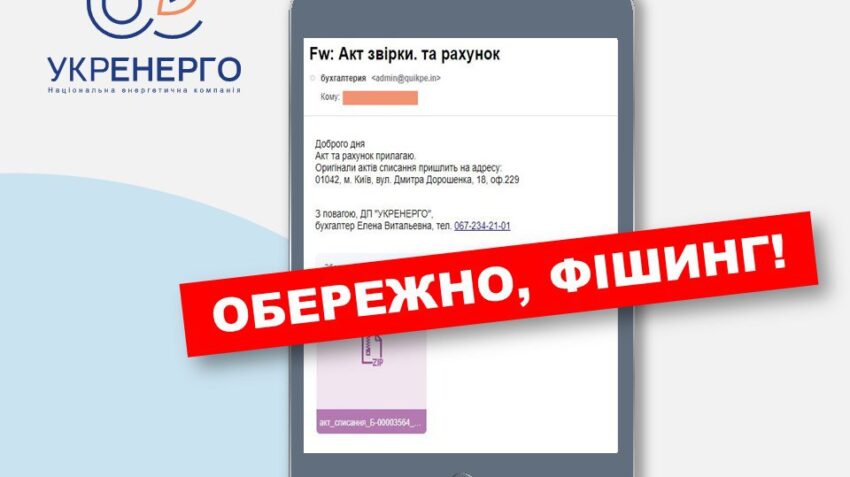 “Укренерго” попередило про розсилку заражених вірусом електронних листів від імені компанії